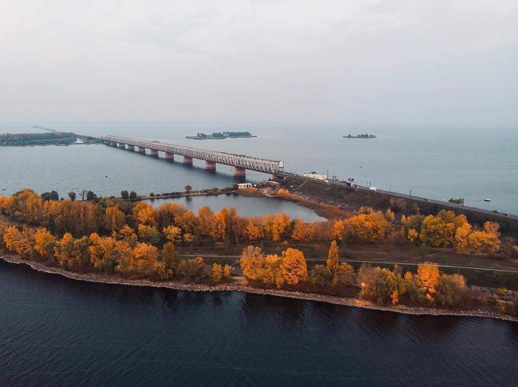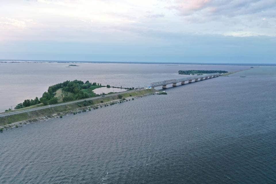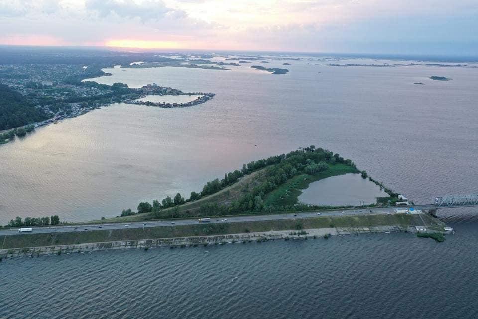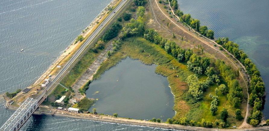 Дамба на річці Дніпро біля міста Черкаси.