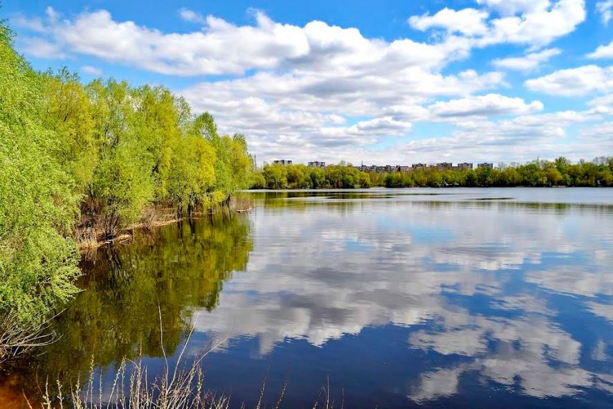 Затока на річці Десенка біля торгового центру SkyMall в місті Київ.